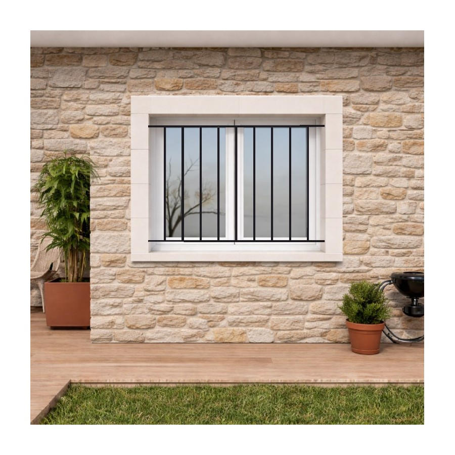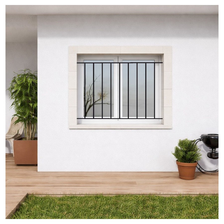 La grille de protection / grille de fenêtre modèle Niort est composée de deux lisses en fer plat de 25x12Mm, et de barreaux en carré plein de 14x14 pour une dimension inférieure à longueur 1400Mm par hauteur 1400Mm.